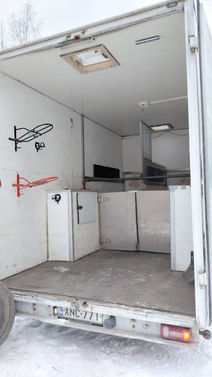 Kahden hevosen kuljetusauto.(Hevoset matkustavat turpa taaksepäin)