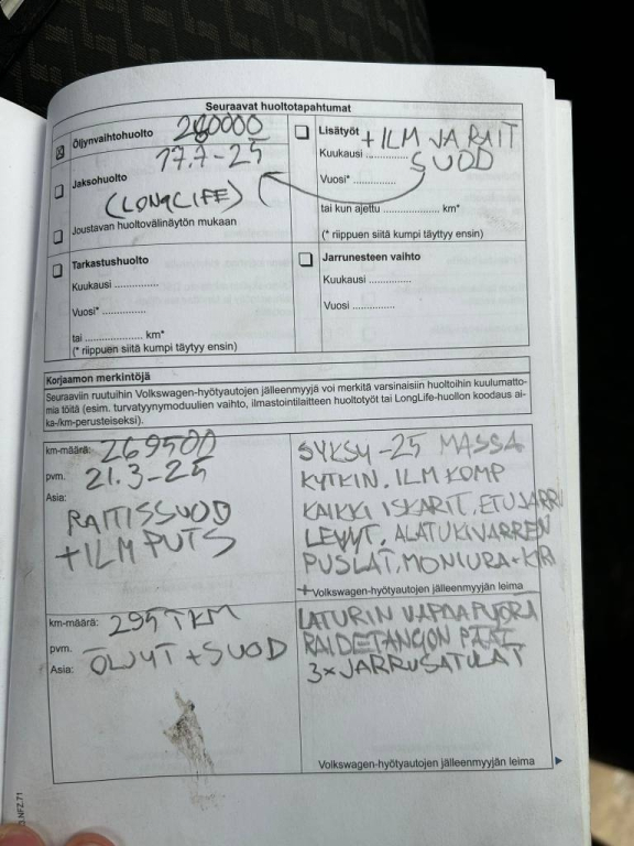 Täysi kytkinpaketti, kaikki iskarit, 3x jarrusatula, raidetangon päät, alatukivarren puslat, ilmastoinnin kompura, moniurahihna, laturin vapaakytkin, nelipyöräsuuntaus