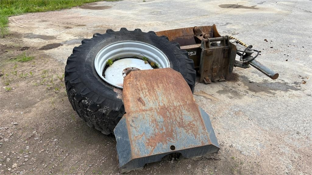 Sorakauha edessä ja mekaaninen pikakiinnike, päävirtakytkin, lohkolämmitin, työvalot, majakka, Taakse kuokkakauha, ojakauha, kallistuva luiskakauha, kaapelikauha ja routapiikki, vararengas