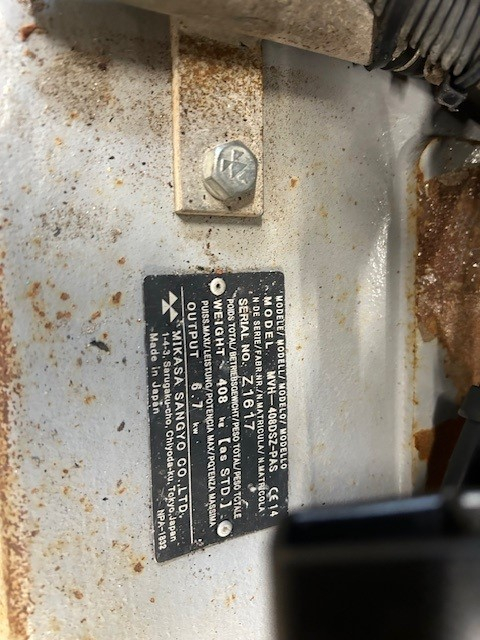 Vaihtokone Mikasa MVH-408DSZ-PAS -maantiivistäjä. Huollettu ja työkuntoinen. Uusi pohjalevy.