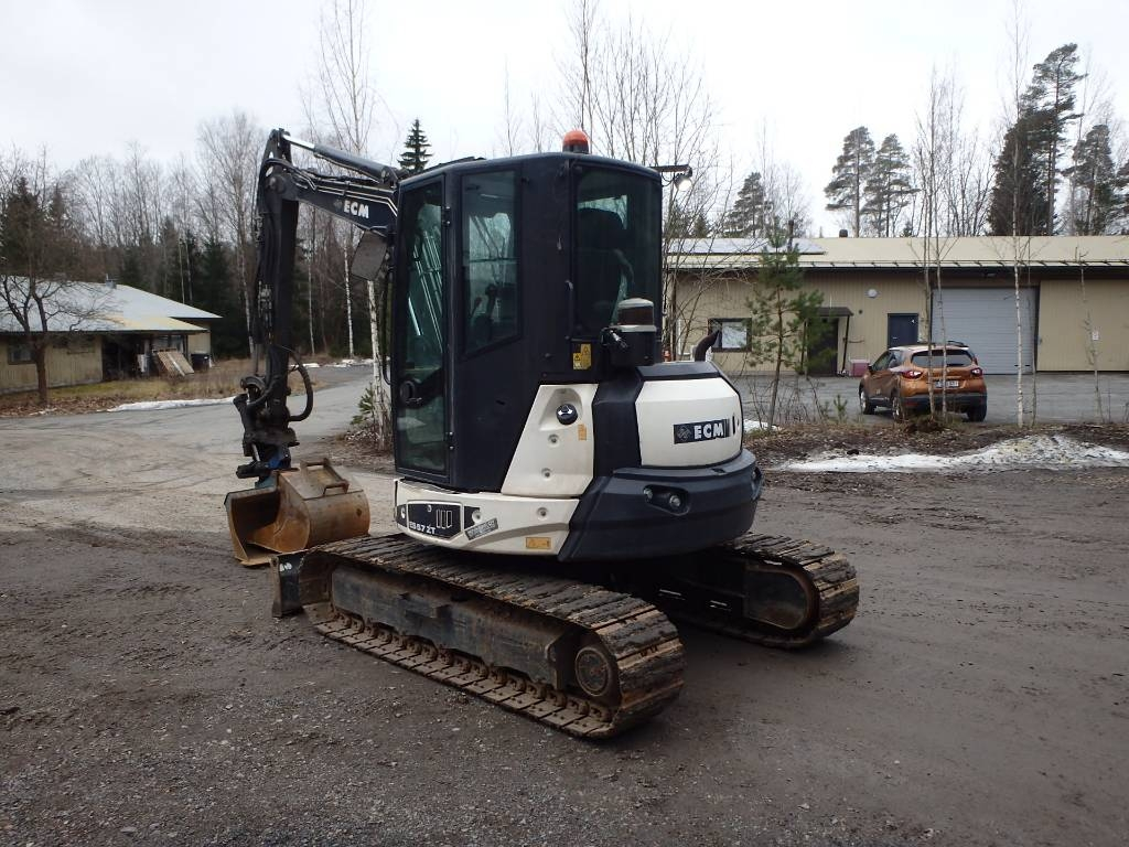 CE hyväksytty ECM:n lyhytperäinen kaivinkone kohtuutunneilla ja hyvillä varusteilla. SMP:n ST6 juuri remontoitu propo-ohjattu irroitettava rototiltti S 40 / S 40, jossa myös lisähydrauliikka esim. kouralle. Luiska ja kuokkakauha, SKF:n rasvari, lohkolämmitin, automaattinen ilmastointi, rautatelat, ledivalot ja varoitusvilkku