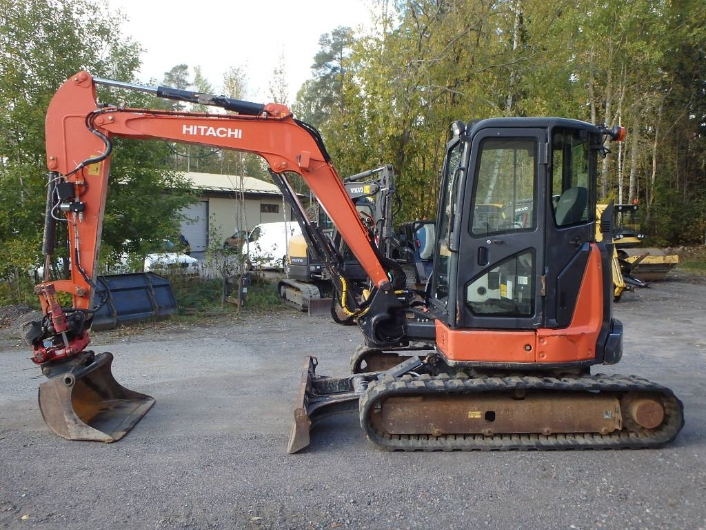 CE hyväksytty lyhytperäinen Hitachnin viisitonninen kaivinkone Indexatorin rototiltillä, jossa lisähydrauliikka esim. kouralle. Hydraulinen kauhanlukitus S-40, luiskakauha, kumitelat, puskulevy, ilmastointi, Yanmarin moottori