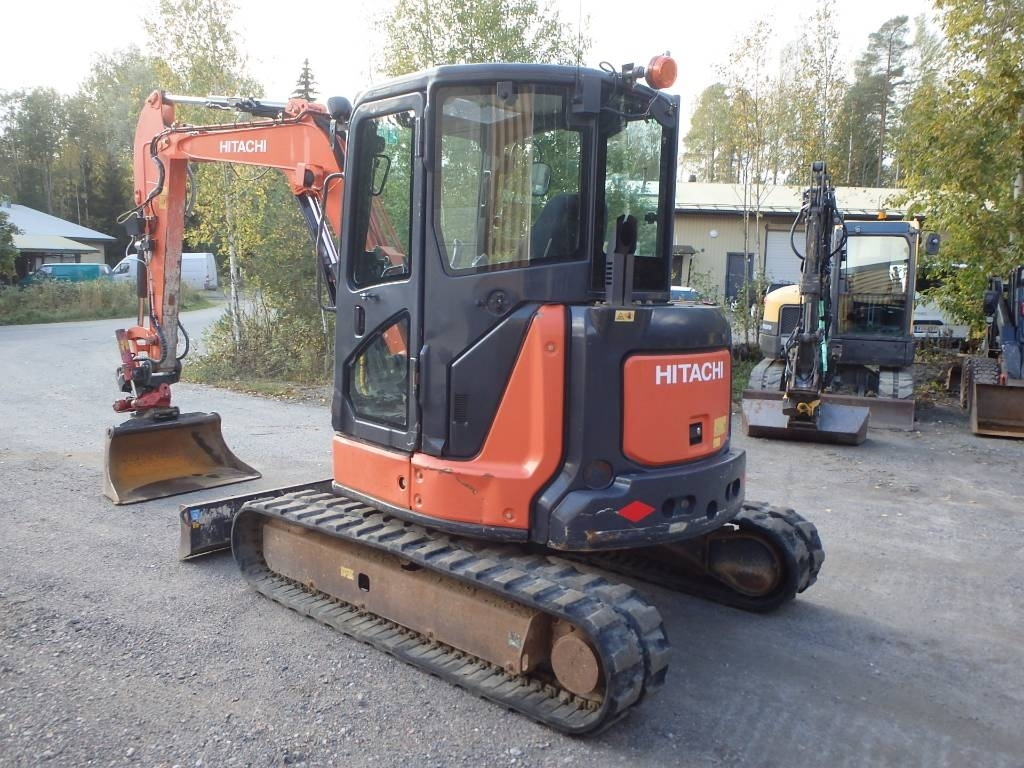 CE hyväksytty lyhytperäinen Hitachnin viisitonninen kaivinkone Indexatorin rototiltillä, jossa lisähydrauliikka esim. kouralle. Hydraulinen kauhanlukitus S-40, luiskakauha, kumitelat, puskulevy, ilmastointi, Yanmarin moottori