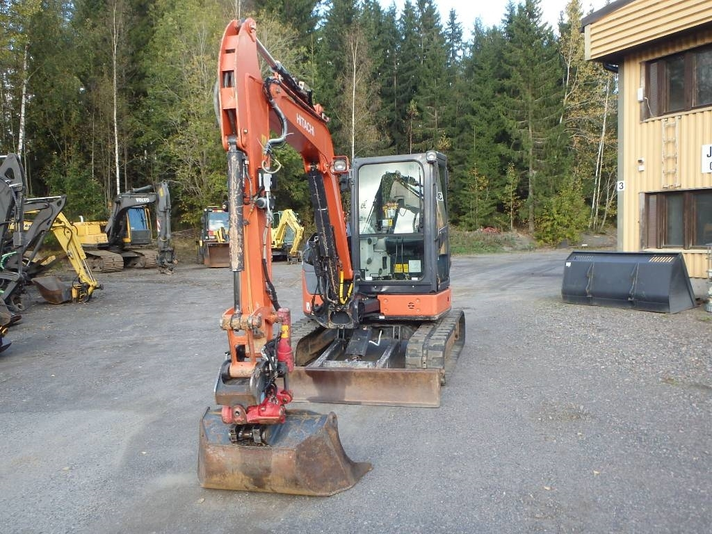 CE hyväksytty lyhytperäinen Hitachnin viisitonninen kaivinkone Indexatorin rototiltillä, jossa lisähydrauliikka esim. kouralle. Hydraulinen kauhanlukitus S-40, luiskakauha, kumitelat, puskulevy, ilmastointi, Yanmarin moottori