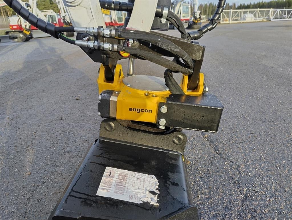 Engconin ohjaus suoraan koneen omilla propohydrauliikoilla, ei turhaa sähköä tiltissä. Puoliautomaattinen lukitus.