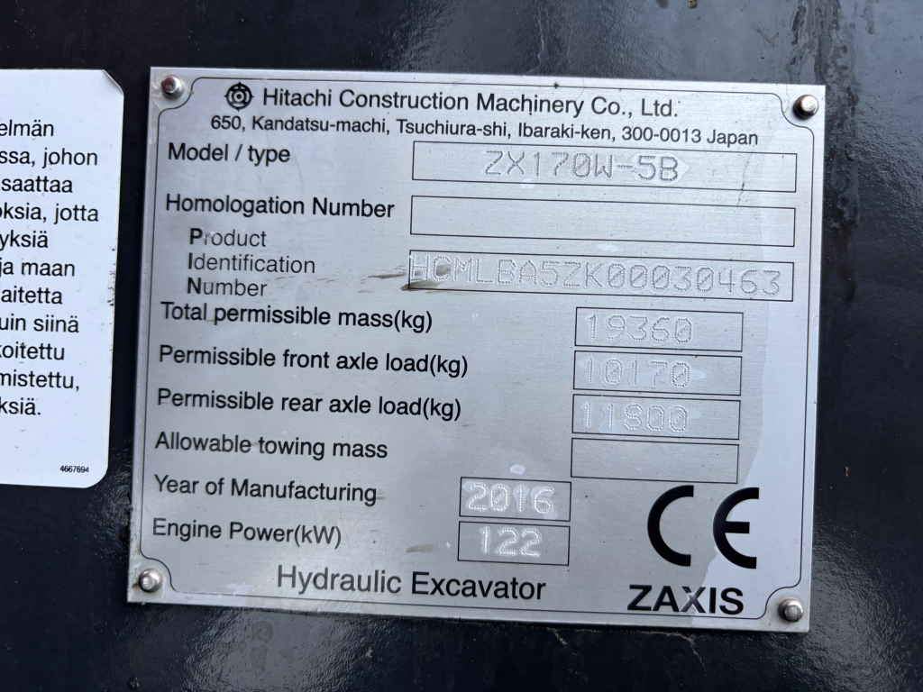 ZX170W-5 RATAVARUSTUS + RASVARI + LÄMMITIN + PROBO ENGCON EC219
