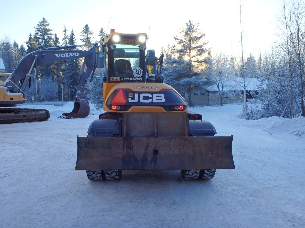 CE hyväksytty JCB:n pyöräalustainen kaivinkone. Engcon rototiltti pihdeillä ja lisähydrauliikalla, luiskakauha, hyvät renkaat, ledivalot, 40 km/h, yksiomisteinen suomikone