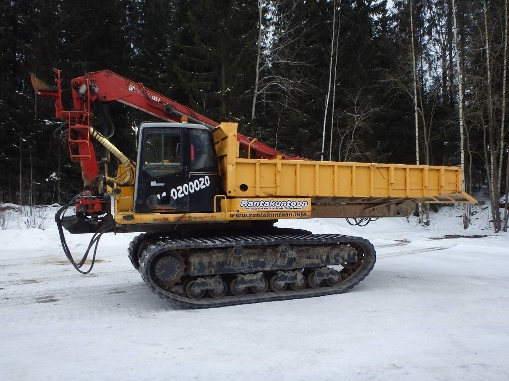 CE hyväksytty Komatsun teladumpperi pyörivällä lavalla. 80 cm hyväkuntoiset kumitelat, lavan mitat 5,2 m x 2,8 m. Hydraulinen perälauta. Logliftin nosturi E 165 ZT vuosimalli 2002, jossa puomin päässä kallistuva kauha. Nosturi on tuppisovituksella ja nopeasti irroitettavissa. Kaikin puolin toimiva laite ja toista samanlaista tuskin tulee vastaan