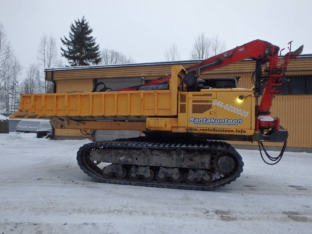 CE hyväksytty Komatsun teladumpperi pyörivällä lavalla. 80 cm hyväkuntoiset kumitelat, lavan mitat 5,2 m x 2,8 m. Hydraulinen perälauta. Logliftin nosturi E 165 ZT vuosimalli 2002, jossa puomin päässä kallistuva kauha. Nosturi on tuppisovituksella ja nopeasti irroitettavissa. Kaikin puolin toimiva laite ja toista samanlaista tuskin tulee vastaan