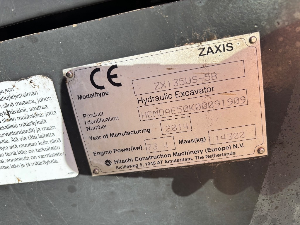 Myydään HITACHI ZX 135 US 5-B / Engcon, Uudet ketjut, Lämmitin