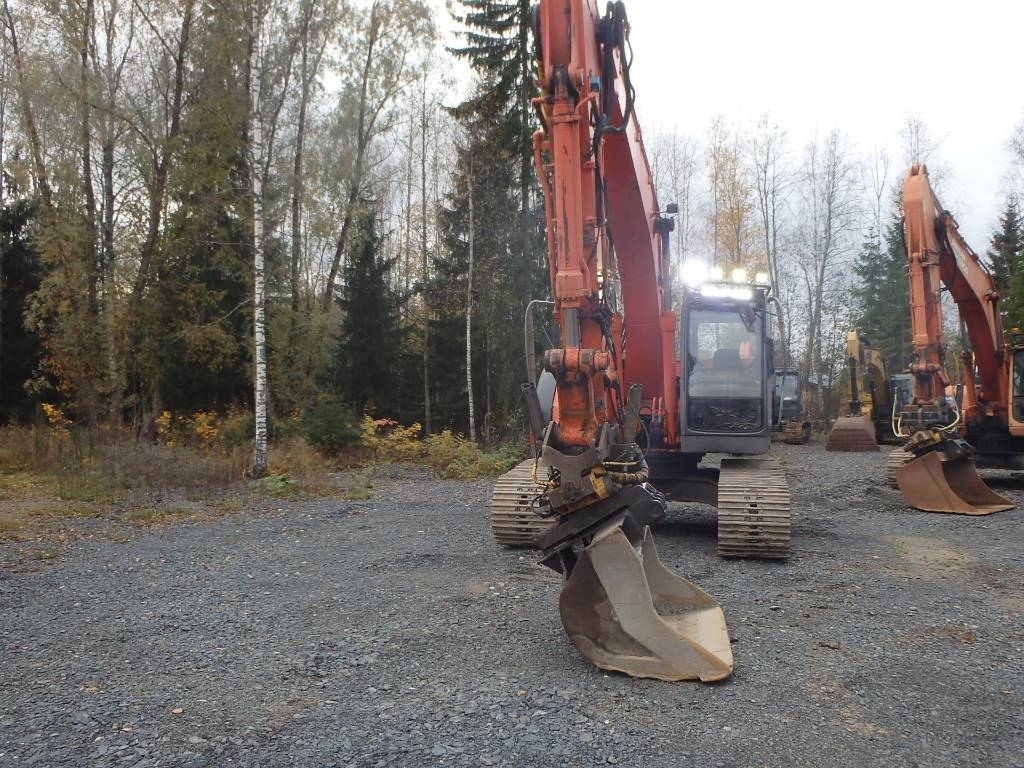 CE hyväksytty 23 tonninen Hitachin lyhytperäinen kaivinkone hyvillä varusteilla. Engconin propo-ohjattu rototiltti, jossa myös lisähydrauliikka esim. kouralle, luiskakauha, 700 mm hyvä telasto, rasvari, webasto, ilmastointi, Isuzun moottori, ledivalot