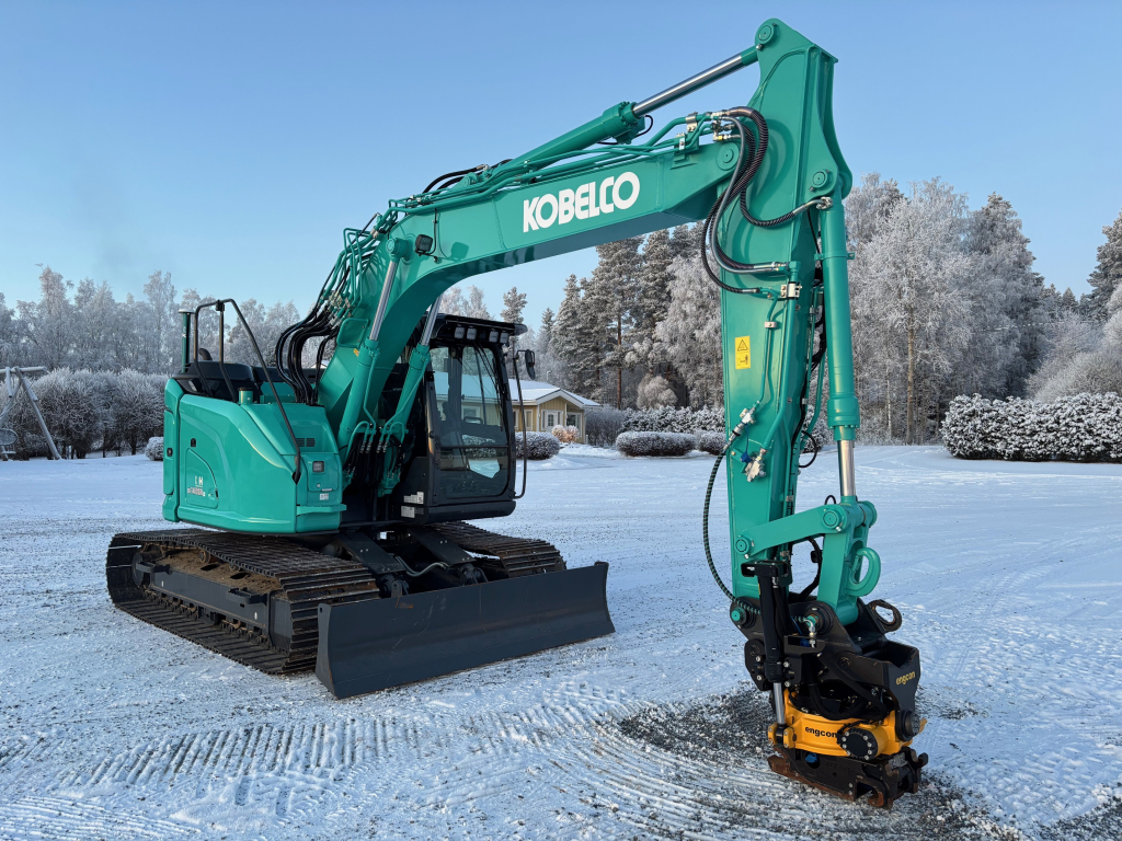 Täysin uutta vastaava ns Suomikone, puskulevy, 700mm telat, vasarahydrauliikka ja erillinen pyörityshydrauliikka, rasvari, lämmitin, Niskakankaan hydraulinen S60 pikaliitin, probo-ohjattu Engcon EC219 tartuntapihdillä (ei ole kuvissa paikoillaan) ja pyörityshydrauliikalla, Nordic LED-työvalot, LA-puhelin, strobo vilkut taakse, LED-vilkkupaneeli, ilmapenkki, kamera, Novatron 3D uusin malli, jne. 3v takuu koneelle on alkanut 05/2025.