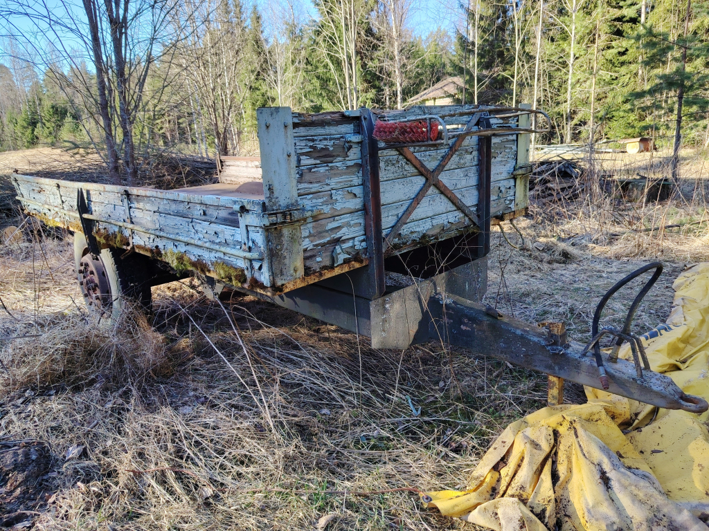 Kippikärry. Rautapohjalla, puuosat uusittava