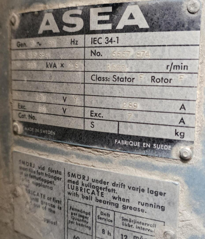 - 250kva generaattori, jota pyörittää Volvo 12 moottori.