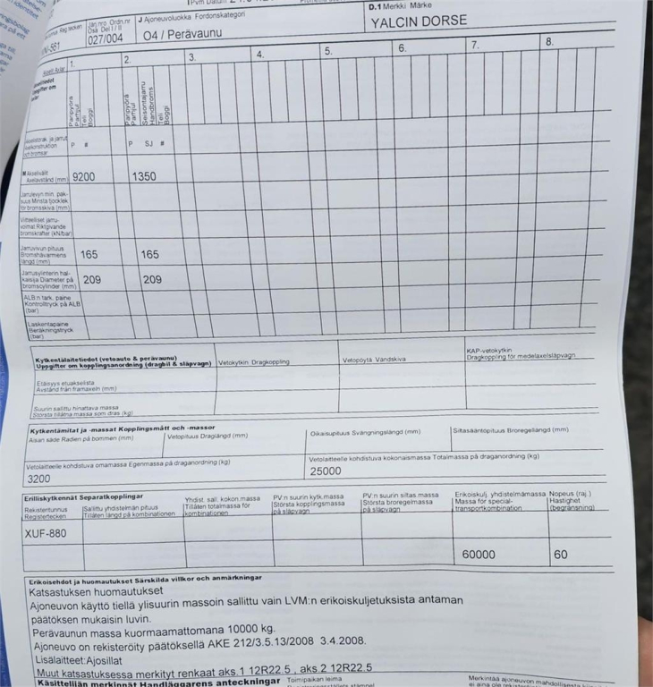 - Tekninen suurin sallittu kokonaismassa 60 000kg