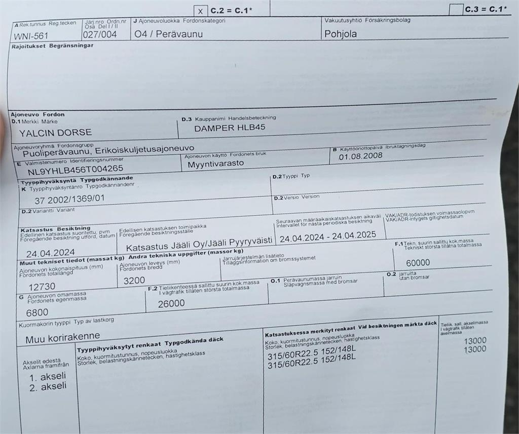 - Tekninen suurin sallittu kokonaismassa 60 000kg
