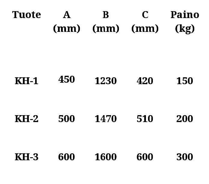 Valmistaja on rajannut koneen maksimikoon KH-1 5,5tn KH-2 7,5tn ja KH-3 10tn, Koura on hyvin tehty ja asiallisesti käyttynä varsinkin KH-3 kouraa on käytössä isommissakin koneissa, takuu vain ei ole silloin voimassa.