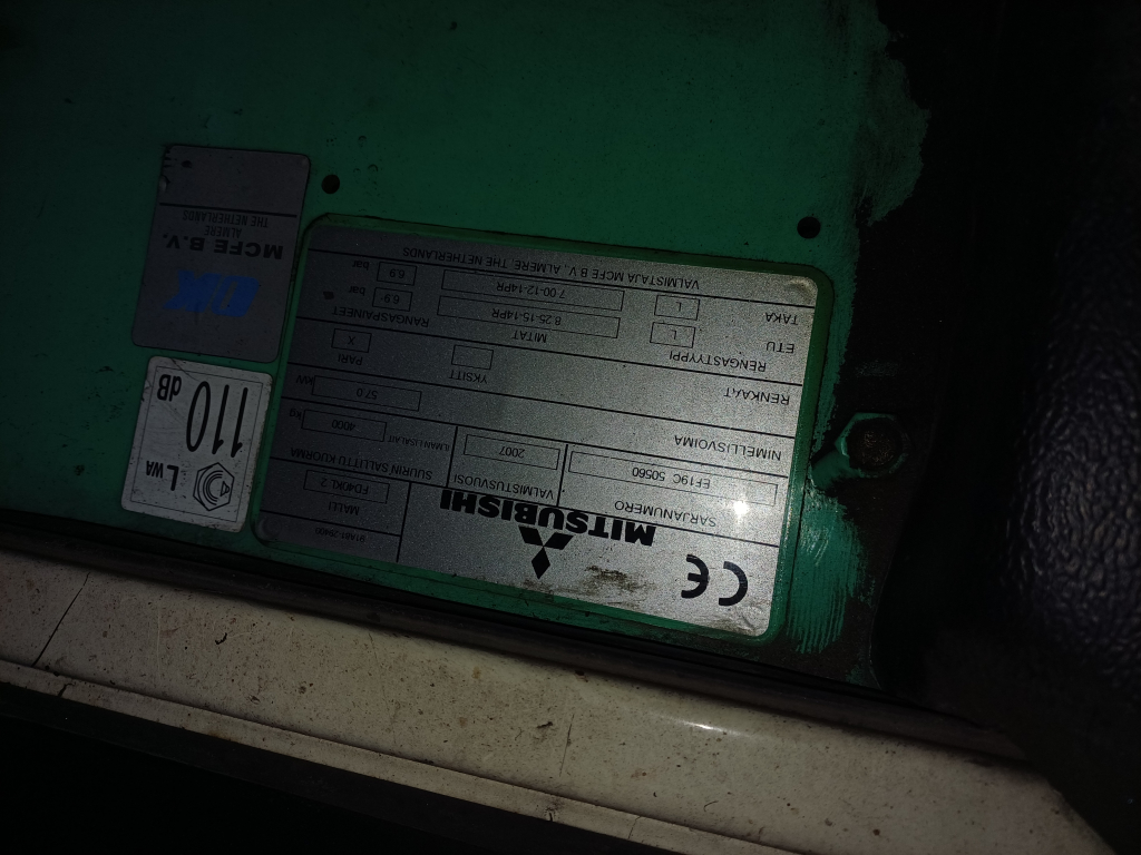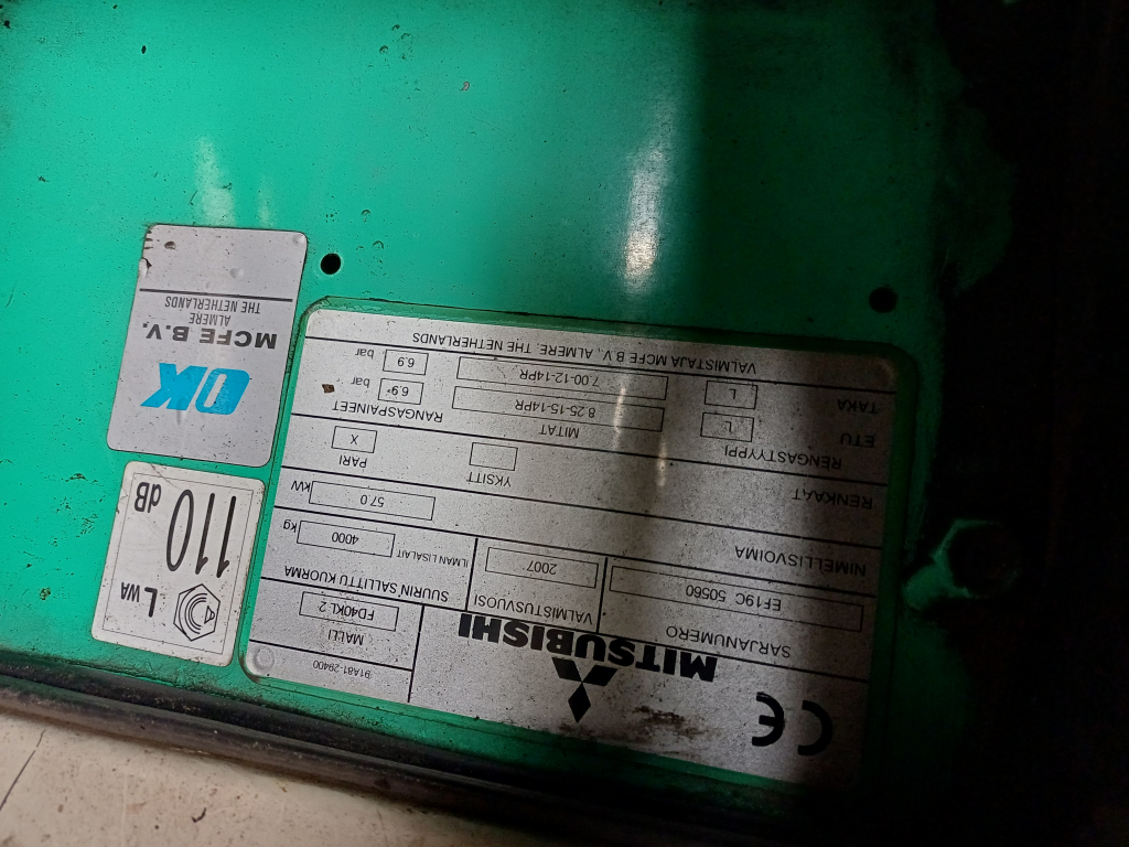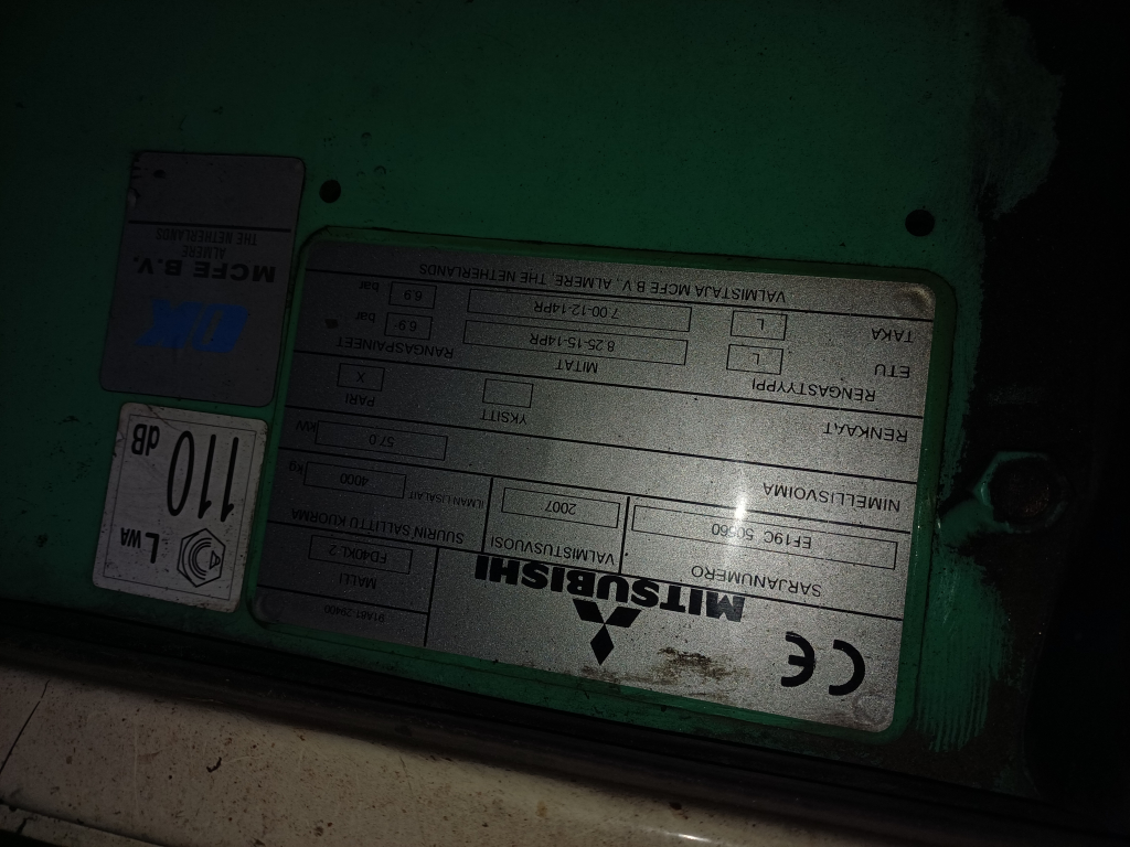 Toimiva työkuntoinen Mitsubishin dieseltrukki vm. 2007. Tunnit 7980h.