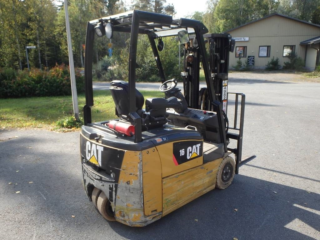 Pienillä tunneilla oleva CATin sähkötrukki Cascaden asetinlaitteella ja tahraamattomilla renkailla, varaaja mukaan