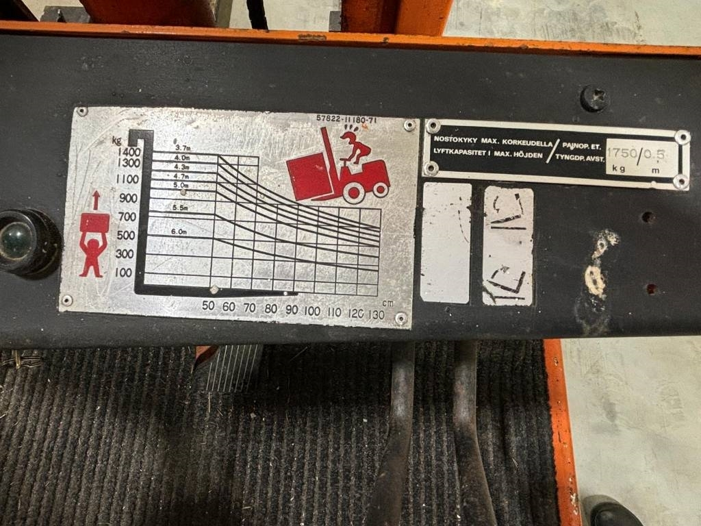 omapaino 3400kg, nostokyky 3,3m korkeuteen 1750kg/500mm 1550kg/600mm.