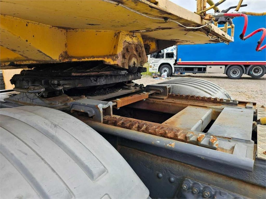 Juuri katsastettu yhdistelmä: Scania 144G 8x4 vetopöytäauto Hiab 330-5 kuormausnosturilla ja perässä vanha kunnon Siimet. Kantavuus tällä yhdistelmällä on noin 43tn.