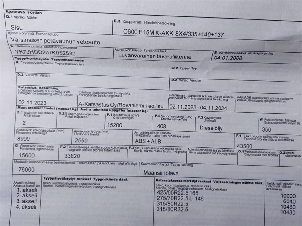 Продажа объявлений SISU C600 E15M 8X4
