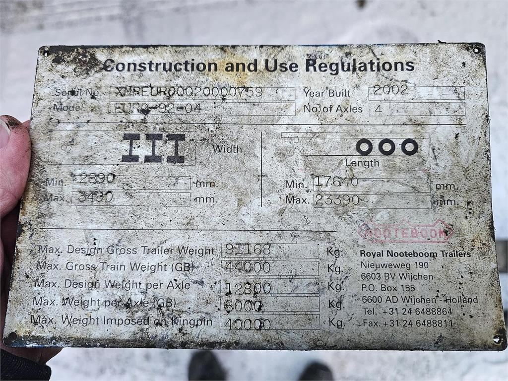 Till salu VOLVO FH16 8X4, Nooteboom Euro-92-04 PPV Lavetti